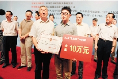 徐庆平为第三届“徐悲鸿奖”中国画展金奖作者颁奖