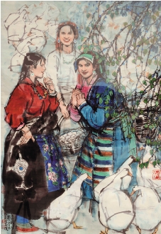 史国良 三个卓玛 68×99cm