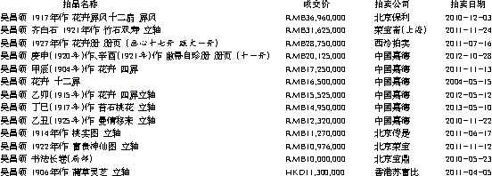 吴昌硕 1917年作 花卉屏风十二扇 屏风 RMB36,960,000 北京保利 2010-12-03