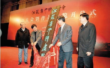 中国美术家协会主席刘大为,江苏省副省长曹卫星、江苏省政协副主席朱晓进、中国画学会副会长兼秘书长孙克为江苏省中国画学会揭牌