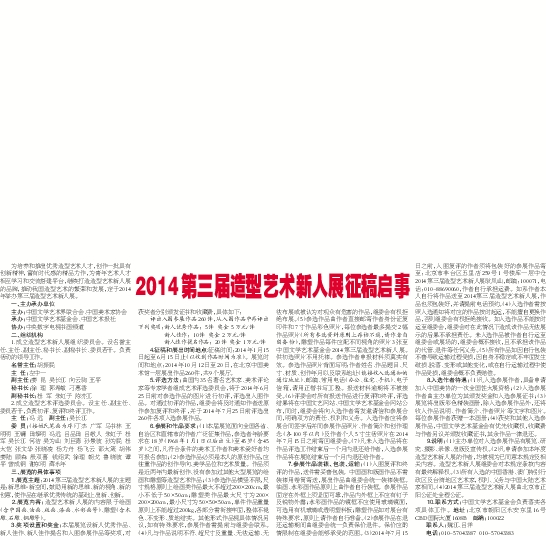 美术报 展讯 00006 2014第三届造型艺术新人展征稿启事 2014-03-01 美术报2014-03-0100017 2 2014年03月01日 星期六