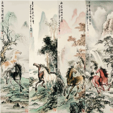 楼意 骏马四条屏