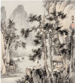 茹峰 松林抚琴图 35×35cm 2013年