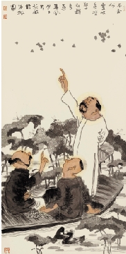 周矩敏 不知何处吹芦管 惊起群鸟逐春风 136×68cm