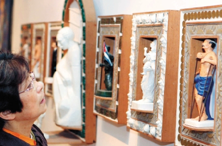 | 图为3月27日,参观者在欣赏雕塑作品。 当日,《因为流动,所以相遇》——当代古巴艺术展在上海城市规划展示馆举办。此次展览展出94位古巴当代艺术家最具代表性的作品112组(件)。展品涵盖摄影、视听、绘画、雕塑以及装置艺术等各种表现形式,充分体现了近50年来古巴丰富多彩的文化。 据新华社 |