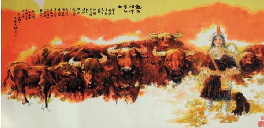 朱介堂 艳阳湖畔·畲家女 209×100cm 2014年
