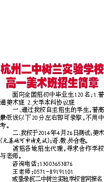 面向全国招初中毕业生120名:1.普通美术班 2.大学本科协议班