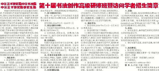2014年秋季,我院将继续和中国艺术研究院研究生院共同招收第十届书法创作高级研修班暨访问学者,具体内容如下: