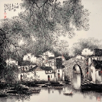 胥力浦 小楼一夜听春雨 69×69cm