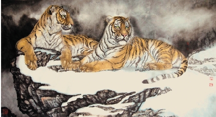 瑞雪双雄 97×180cm