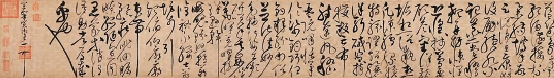 赵佶 草书千字文卷局部 北宋(960-1127) 描金云龙笺本 纵31.5厘米、横1172.1厘米 辽宁省博物馆藏