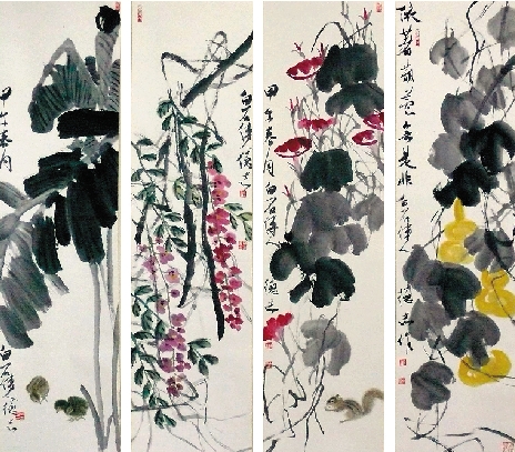 苗德志(辽宁沈阳) 花鸟四条屏 中国画