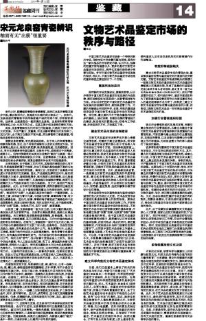 要辨龙泉窑青瓷,首先要观其胎釉。由于宋人的审美情趣比较崇尚釉色美,因此,这个时期的烧瓷均以追求玉质效应为佳。龙泉青瓷也是如此,釉面光润肥厚,釉质晶莹细腻,玉质感极强。因此,有无玉质感是首先要观察的,如釉色干枯,或釉面过于明亮者,就要小心。但有时候滋润的玉质光与过亮的“贼光”也就是一线之差,初入收藏者较难将两者区分开来。这就需要多上手真品,到博物馆或拍卖会多看实物,慢慢去感受和体会其中的细微差异。