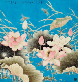 张应平 荷塘清梦 重彩纸本 69×65cm