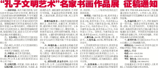 征稿通知在《中国书画报》、《美术报》、《书法报》和部分网站刊登。