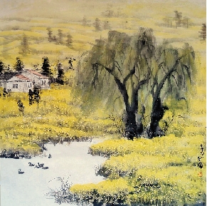 胡粤海(江苏沭阳) 花里人家得春多 中国画