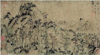 黄公望 秋岩叠嶂图 设色绢本 镜芯 25×46cm