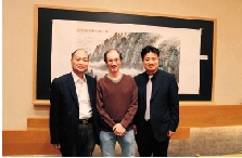 陈廷友先生与哈佛大学Frank教授,中国国家画院美国创研中心主任、金泓文化(美国)发展有限公司翟优先生在画展现场