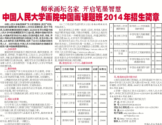 中国人民大学画院中国画课题班2014年招生简章
