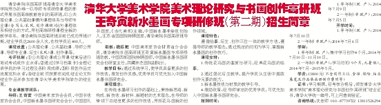 清华美院书画高研班是清华大学美术学院开办的唯一以导师专项研修课程的形式开展书画高端教育培训的高研班,以公共理论课、公共基础课横向课程体系与导师专业课(含写生/采风、创作课程)纵向课程体系相结合的方式,开创高端研修课程全新的教学体系。清华美院书画高研班目前已成功开班17期,结业学员达2600余人次,在校学员近400人。