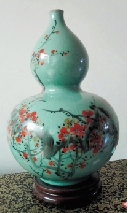 毛丹宇 梅子青斗彩葫芦瓶