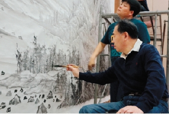 中国美协理事曾先国带领团队为青岛高铁北站创作《青岛揽胜》巨幅作品