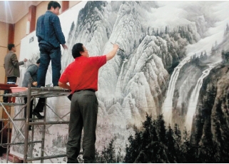 中国美协理事曾先国带领团队为青岛高铁北站创作《青岛揽胜》巨幅作品