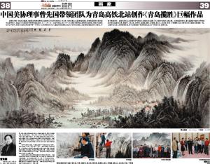 中国美协理事曾先国带领团队为青岛高铁北站创作《青岛揽胜》巨幅作品
