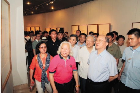 5月31日,吴山明高晔夫妇陪同罗富和、徐匡迪、路甬祥观看展览