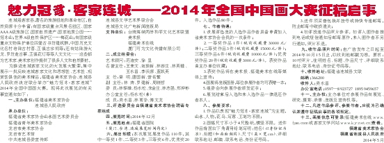 魅力冠豸·客家连城——2014年全国中国画大赛征稿启事