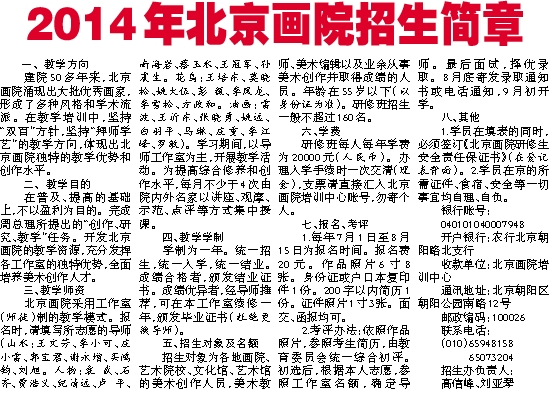 2014年北京画院招生简章