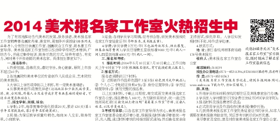 5.凡获得美术报名家工作室优秀结业证书的学员,如本人需要在美术报做有偿宣传,凭证享有刊例价的8折优惠。