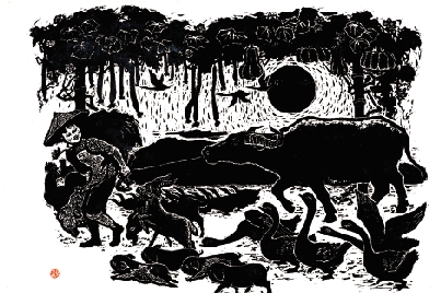 汪苗 六畜兴旺(木刻) 66×43.5cm 1981年