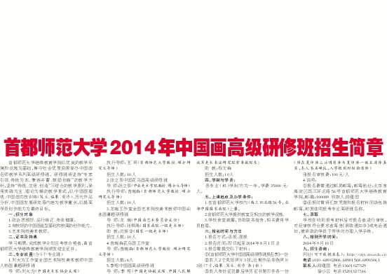 美术报 艺闻 00004 首都师范大学2014年中国画高级研修班招生简章 2014-06-21 美术报2014-06-2100014 2 2014年06月21日 星期六