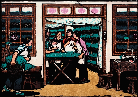 汪苗 养蚕姑娘(水印木刻) 70×50cm 1963年