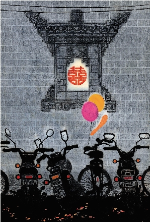 汪苗 喜(水印木刻) 61×41.5cm 1987年