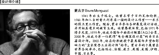 1941年出生于瑞士。他曾求学于日内瓦和伦敦,1961年加入当时意大利首屈一指的设计工作室——米兰的博杰里工作室。随后,蒙古齐参与各种展览设计活动,并开始其漫长的教育生涯。他曾屡获殊荣,包括1971年博多尼奖,1979年,他成为国际平面设计联盟(AGI)会员,2000年,他成为第一位获得“龟仓雄策设计奖”的非日本籍设计师。2003年,他在伦敦被授予最具国际声望和影响力的“皇家荣誉工业设计师”称号。蒙古齐的个展曾在世界各地举办,包括瑞士、法国、波兰、英国、美国、伊朗、中国、日本等。