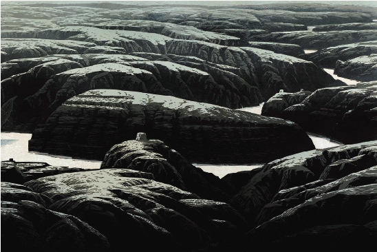 姚天沐 黄河腹地 油套木刻 88×60cm 1994年