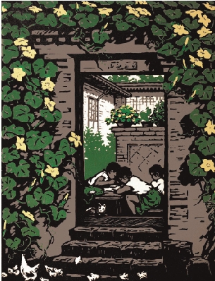 姚天沐 满院春光 油套木刻 1980年