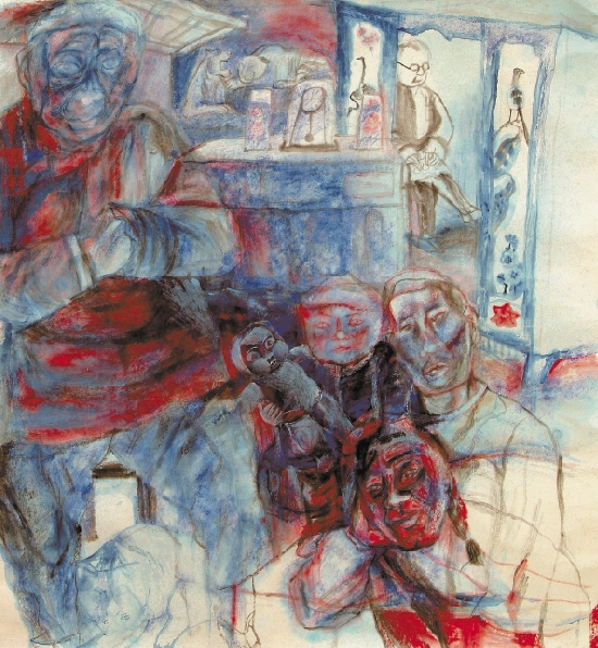 王彦萍 农民写生——老少三代 88×98cm 纸本 重彩写意 1997年