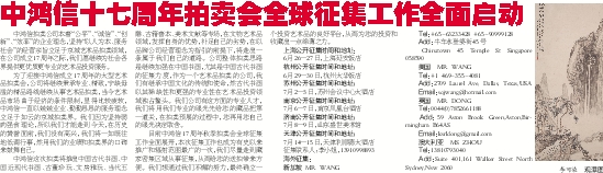 中鸿信十七周年拍卖会全球征集工作全面启动