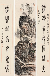 黄宾虹(1865-1955) 金文《剑戟咸韶》七言 146×26cm×2 水墨纸本 对联