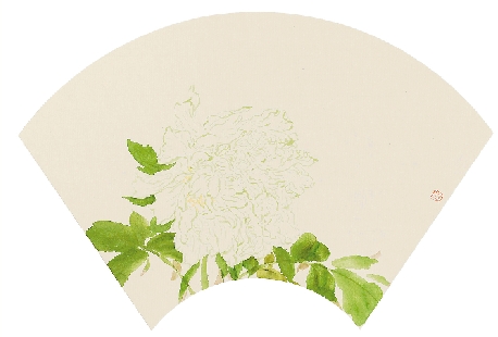 熊广琴 荷上花系列——绿牡丹(三) 扇长46cm 2014年