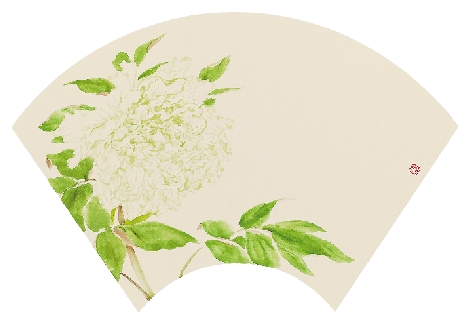 熊广琴 河上花系列——绿牡丹(五) 扇长46cm 2014年