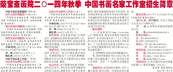 荣宝斋画院二○一四年秋季 中国书画名家工作室招生简章