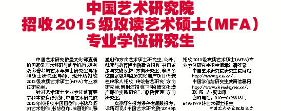 欢迎符合报考条件者踊跃报考,详情可见《中国艺术研究院2014年招收2015级攻读艺术硕士(MFA)专业学位研究生招生简章》,请登录