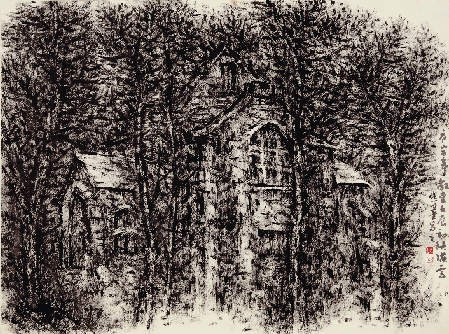 陈云 庐山百年教堂 58×43cm 焦墨写生 2012年