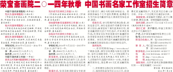 荣宝斋画院二○一四年秋季 中国书画名家工作室招生简章