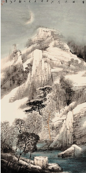 胡立伟 寒林晓月图 136×68cm 纸本设色