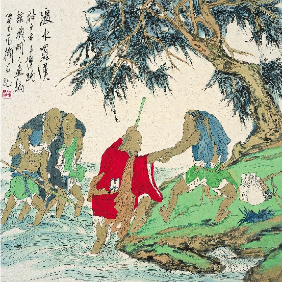 范扬 渡水罗汉 50×50cm 纸本设色 2013年